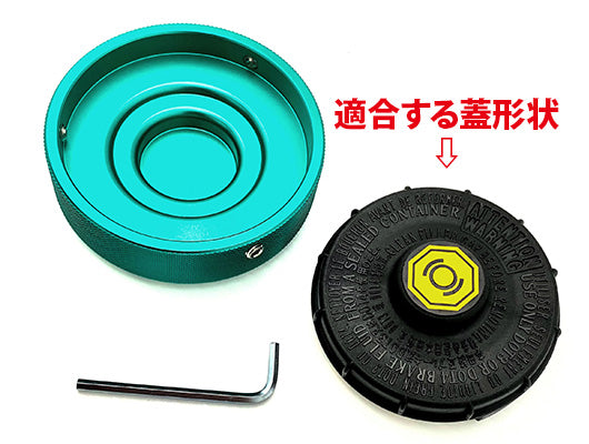 Easy design by putting it on a genuine cap and fixing it with a potato screw. A master cylinder cap with a green alumite color finish that can be attached to various vehicle models if the size matches.