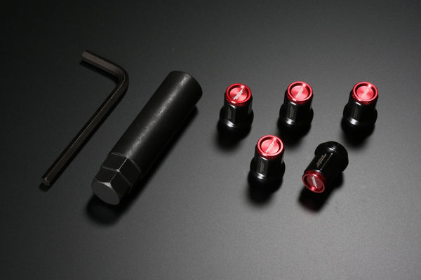 | Product Description | Material Body: Chrome vanadium steel Head: Aluminum color: Body: Black plating , Top: Colored anodized aluminum Screw diameter: M12 Thread pitch: P=1.25 Effective screw: 20mm length: With aluminum cap: 28mm Without aluminum cap: 25mm Base Outer Diameter: φ20mm Seat information: 60° taper Weight : With aluminum cap: Approx. 27g/piece, Without aluminum cap: Approx. 25g/piece accessories: Dedicated adapter (insertion outer diameter 24 mm, wrench size 19/21 mm), Hexagon wrench |