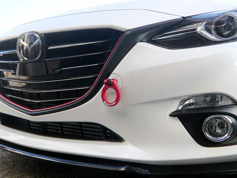 | Product Description | Bolt-on to the genuine tow hook mounting hole. A type of steel swinging towing hook that attaches to the genuine tow hook mounting hole. By folding it, you can drive on public roads even while wearing it. A plunger is used to prevent the vehicle from falling over to the vehicle body due to vibration or wind pressure while driving, and it can be fixed at 0 ° / 90 ° without using tools, so the hook can be moved immediately in an emergency. You can let it. Strength that can be reliably towed in motor sports. The shape is designed according to the FIA J standard, so it can be used for international and domestic races. High rigidity is achieved by making the hook shape of the moving part a perfect ring shape. A lineup of three colors: red, yellow, and silver. It is also effective as a dress-up item that creates a lacy atmosphere. |