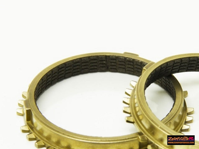 | Product Description | Carbon reinforced synchro set (1-5) For Y1 / S1 type transmission Carbon synchro gear 1st to 5th speed set (for 1 unit). [New carbon fiber lining] All carbon linings are used instead of genuine coatings. [Reliable made in Japan] Brass material is made in Japan to increase strength and reliability. [Design that emphasizes high revs] A special design that estimates shift changes at high revs compared to conventional genuine products. [Increase in contact area] The load is reduced by increasing the contact area of the carbon material compared to the conventional product. [Durability with super long life] By weaving a fiber mesh between carbon and brass material, peeling / wear is reduced. Many people are looking for it due to the discontinuation of genuine products. Recommended aftermarket parts for those who drive on the circuit! |