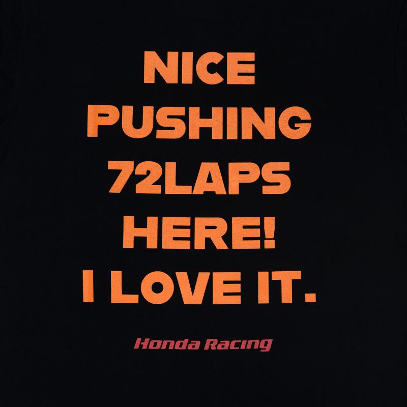 | Product Description | Honda original Japanese limited goods A T-shirt made to commemorate Max Verstappen's victory at the Grand Prix in his home country. A T-shirt with a solid body that does not easily lose its shape using 6.2 oz fabric. Enthusiastic cheers for Verstappen. The front is printed with the machine running against the background of the impressive smoke from the audience seats at the 2021 Dutch Grand Prix and the schedule. The back is "NICE PUSHING 72LAPS HERE" spoken wirelessly after winning the race. The text "I LOVE IT" is printed. Material: Cotton (100%) |