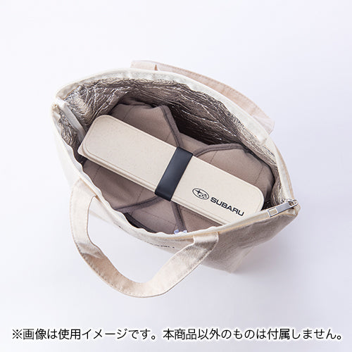 | Product Description | Lunch bag that can also be used as a soft coolerThis lunch tote bag can hold a lunch box and a 500ml plastic bottle.The simple design makes the most of natural materials. With a discreet Subaru logo, this bag is easy to take to work or school.The soft but sturdy fabric makes it easy to carry, and the zipper on the top allows it to be stored closed. It can also be used as a soft cooler bag by inserting a coolant, so you can enjoy your lunch even during hot weather.Pair it with the SUBARU Lunch Box and cutlery to make lunchtime more enjoyable!■Material: Cotton and others■Size: [Main body] Approx. W330×D130×H200mm [Handle] Approx. 25×350mm■Color: Beige■Country/Region of Origin: ChinaProduct Notes・Do not put liquids directly into the bag as it cannot be completely sealed.・If it gets wet, wipe it with a dry cloth and dry it in the shade.・Do not place it near fire or in a high temperature area.・If you try to put a large object in it, it may tear.・Please note that putting excessively heavy objects or sharp objects in it may cause damage.・If the bag is dropped or shaken while the contents are frozen, it may tear.・The cooling and heat retention effect varies depending on the conditions of use.・When not in use, dry the inside thoroughly before storing.・Do not wash or iron.・If it gets dirty, wipe it with a tightly wrung cloth.・If there is a print, do not rub it hard as it may fade or peel off.・Please keep out of reach of small children.・Please note that the color of the actual product may differ from the color shown in the photo on your computer screen. |