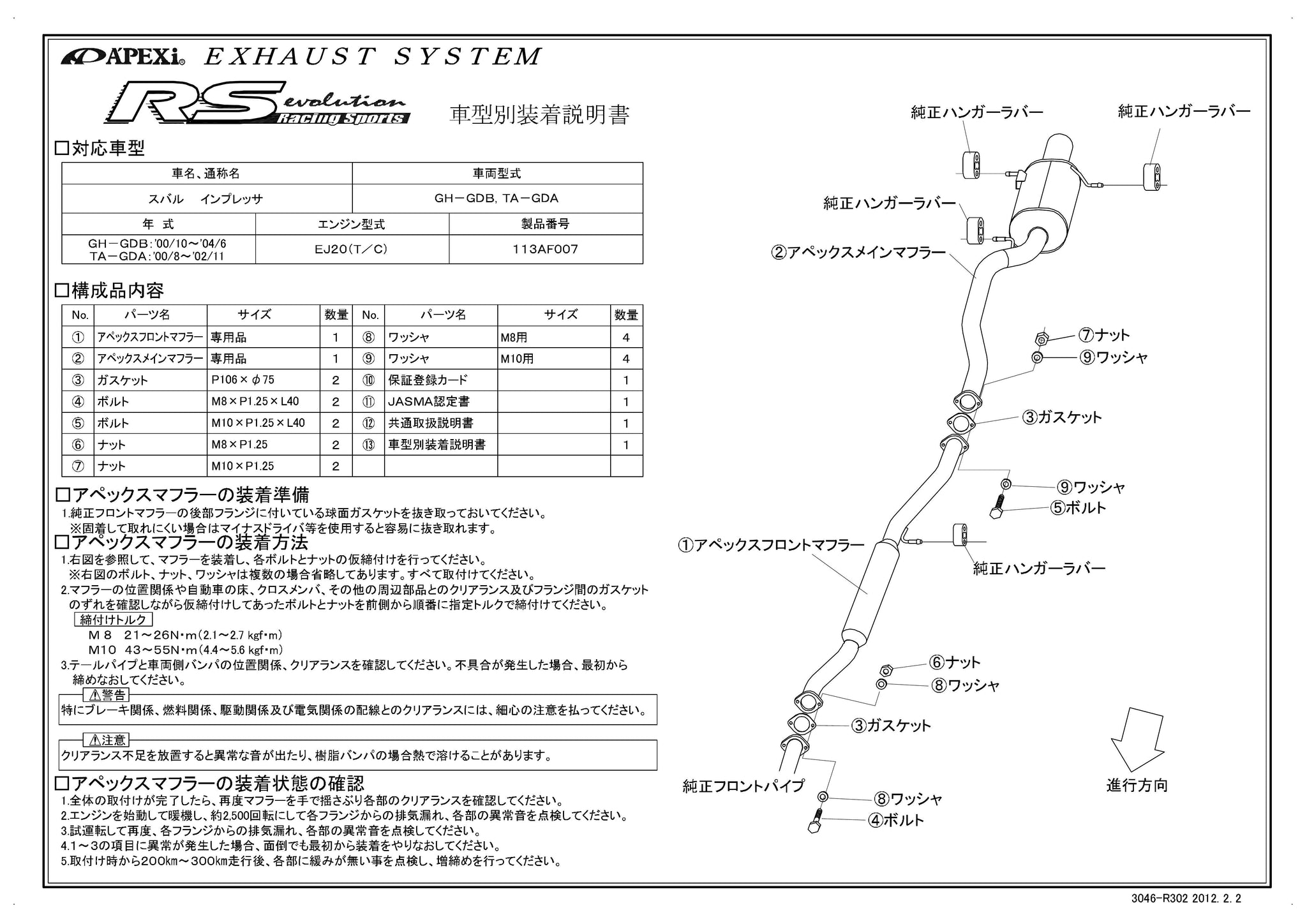 APEXI RS Evolution Exhaust For MAZDA Impreza GDA 113AF007
