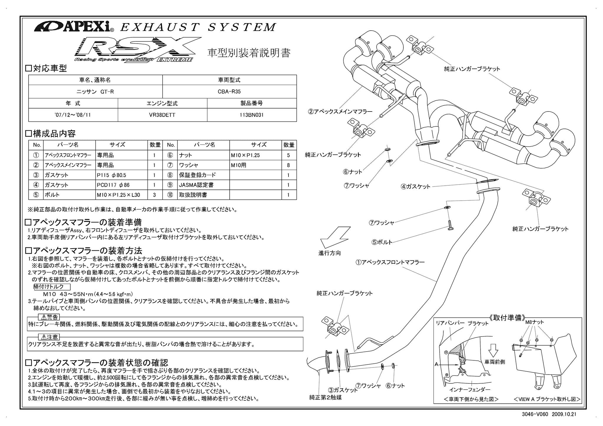 APEXI RS Evolution Exhaust X For NISSAN GT-R R35 113BN031