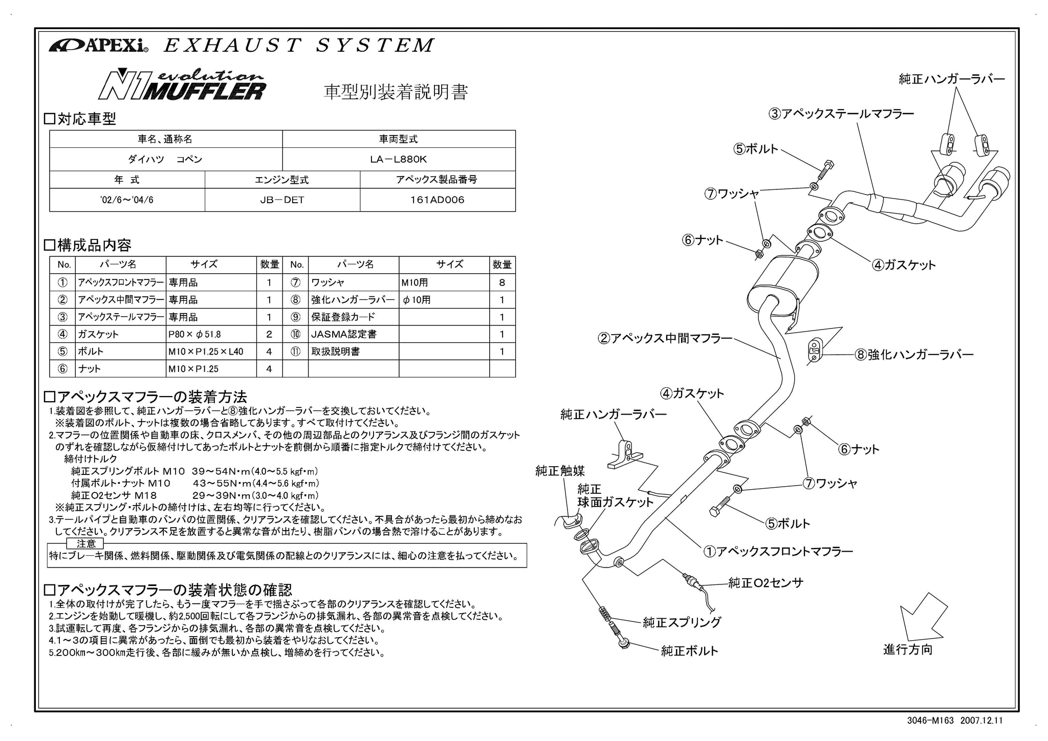 | Product Description | Model Year: 02/06-04/06 Main Pipe Diameter: Ï_50 ___ Ï_60 Ã_ 2 No of Pieces: 3 Tail Diameter: Ï_100 / Ï_75 Ã_ 2 Exhaust System Type: Exchange immediately after the SUPER CATALYZERlyst Sound Level: Left 92 right 91 Ground Cleance :103 |
