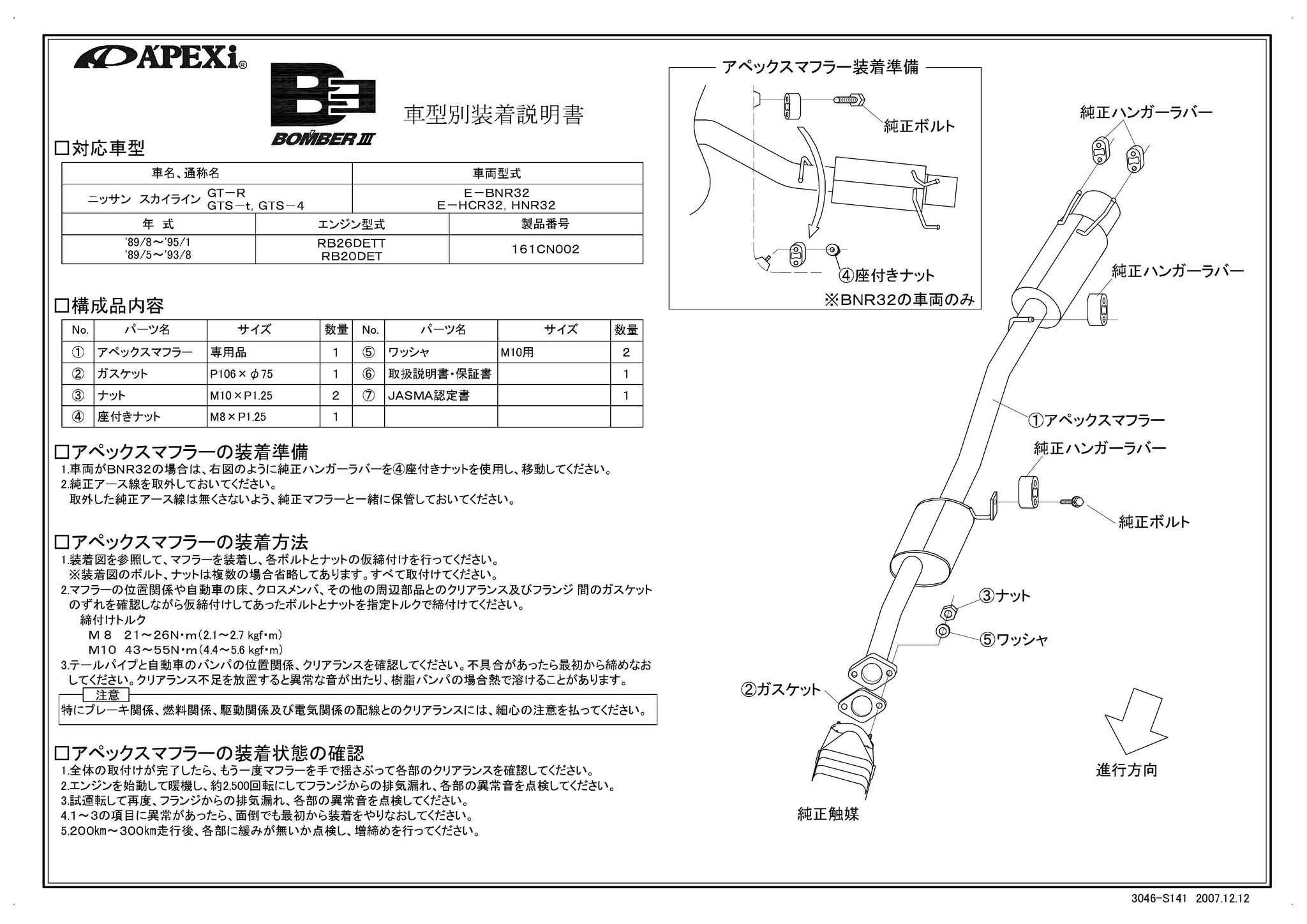 | Product Description | Model Year: 89/08-95/01 Main Pipe Diameter: Ï_85 ___ Ï_95 No of Pieces: 1 Tail Diameter: Ï_160 / Ï_115 Exhaust System Type: Exchange immediately after the SUPER CATALYZERlyst Sound Level: 97 Ground Cleance :130 |