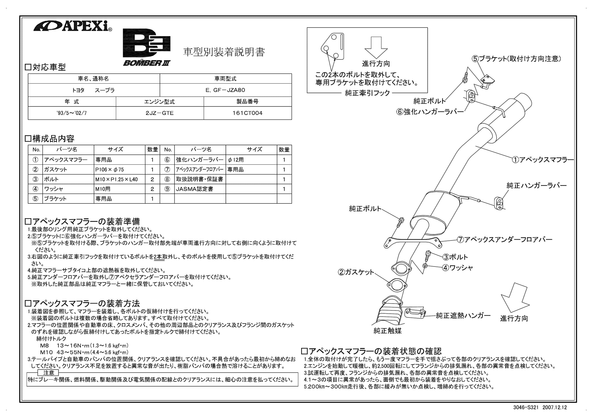 APEXI BOMBER 3 Exhaust For TOYOTA Supra JZA80 161CT004