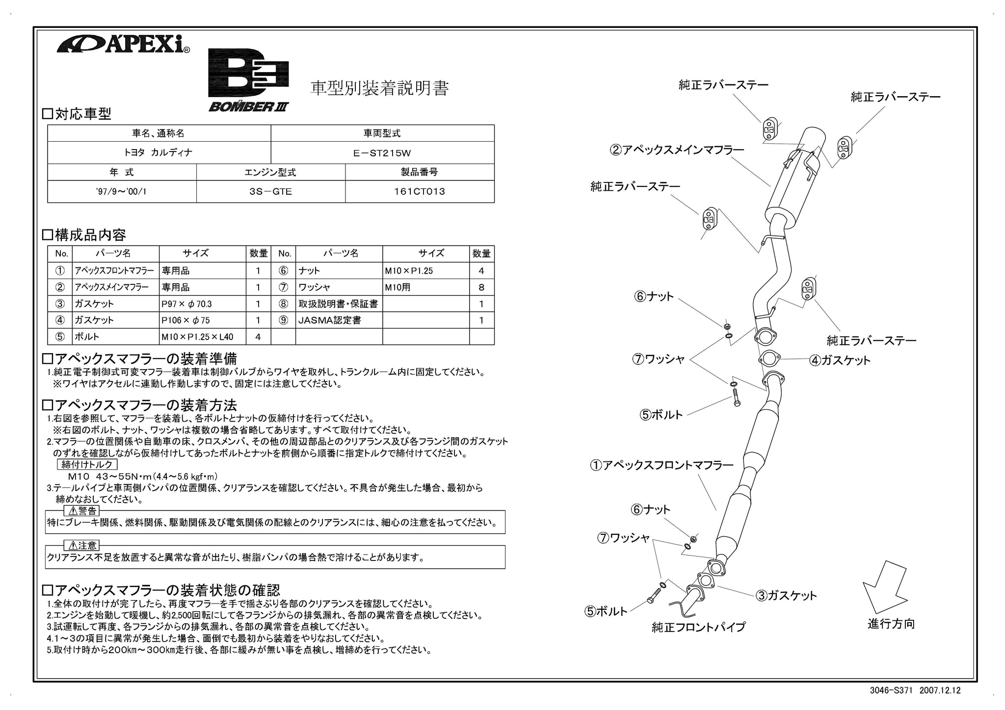 | Compatible Car | TOYOTA Caldina GT-T |