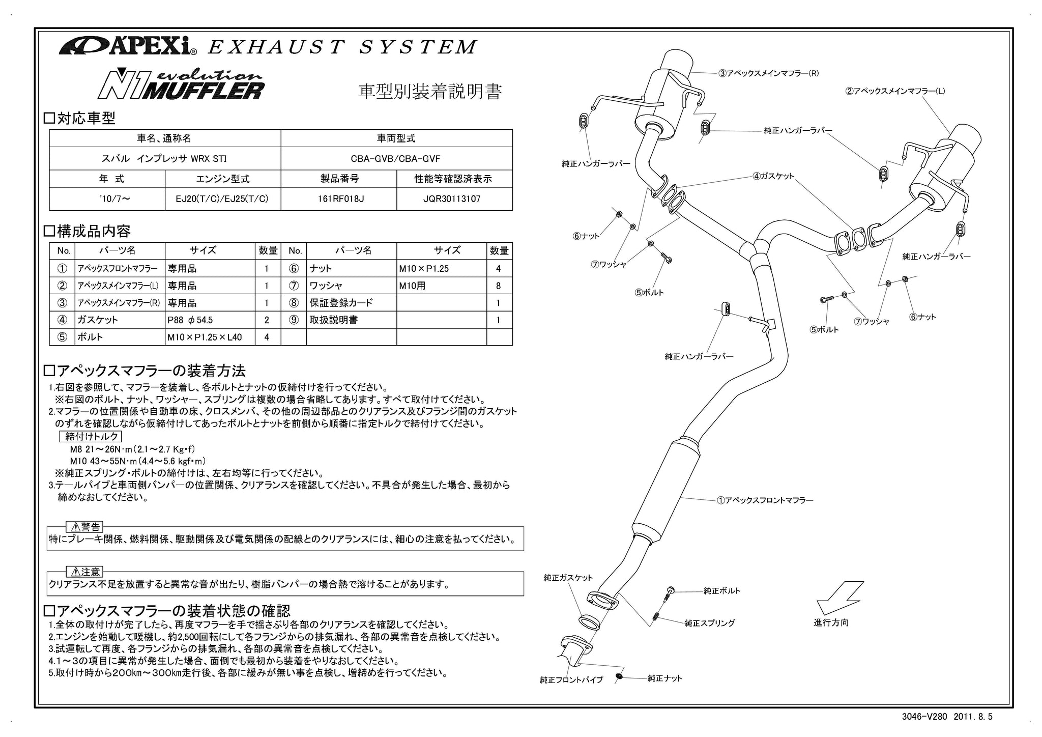 APEXI N1 Evolution B Exhaust For MAZDA Impreza GVB 161RF018J