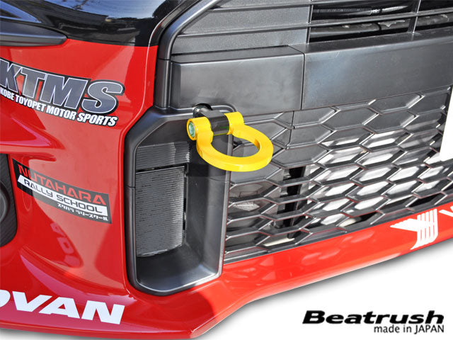| Product Description | The Beatrush font tow hook is a direct bolt-on with so no drilling or cutting of the chassis beam required. This piece is durable and robust. Specifications: Material:t=9.0mm Steel. Thread size:M18×3.0P Installation: Bolt on. |