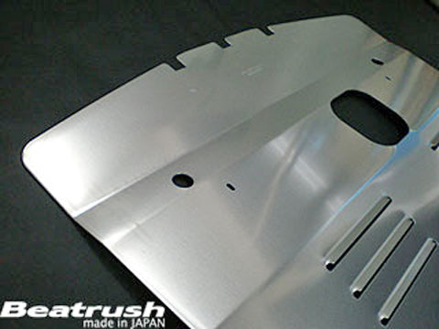 | Product Description | Beatrush Under Panel enhances downside rectification at high speed and generates down force. It also restrain the air stream from getting caught in the engine room to inhibit the engine from over heating. Specifications: UNDER PANEL:t=2.0mm Aluminum Bracket:Aluminum Installation: Bolt on. |