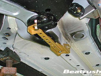 | Product Description | Beatrush front member support bar joint the suspension arm mounting bolt and the floor frame front part to raise the member floor rigidity and increase the front suspension performance body ridigity. Specifications: Material:Steel with a gold paint finish finish. Weight:1.3 Kg Installation: Bolt on. |