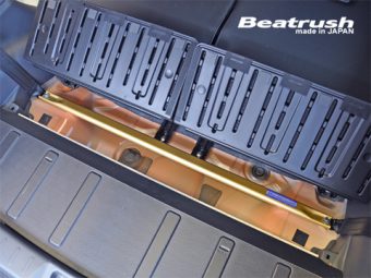 | Product Description | It joints the left and right main frames from inside the trunk with a horizontal one line with an aluminum oval shaft to increase the chassis body rigidity. Specifications: Shaft:Aluminum-oval pipe with a gold paint finish. Weight:0.6 kg Installation: Bolt on. ※ After installation, the slide amount of the rear seat is limited by 1 notch (about 8 mm). |