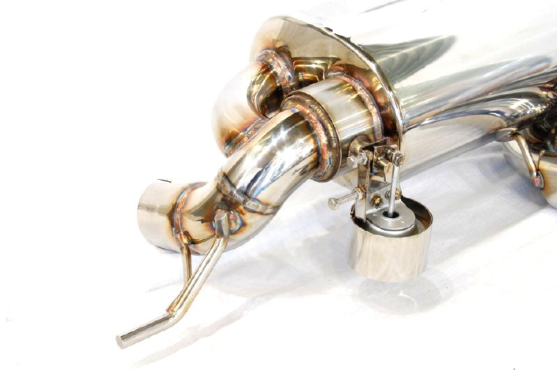KIT Contents: Valvetronic Exhaust System (With Volume Switching) / Laser Wolf V.T.Material: Stainless SteelSpecifications: CaterbackTail Shape: 2x80mmStandard Switching Method: Laser Wolf V.T (Remote Control) Total size of three sides : 200cmOur exhaust systems are characterized by the combination of metals with different properties to create a unique tone. Therefore, they are completely handmade and all made to order. Delivery time usually takes 14 to 20 days, depending on the order.Volume setting:When ordering, you can choose from 5 exhaust volume levels.The standard settings are Silent Mode: Level 2, F1 Mode: Level 5.The most popular combination is Silent Mode: Level 2, F1 Mode: Level 5.Volume Levels: Level 1: Equal to normal muffler soundLevel 2: Quiet sports muffler soundLevel 3: Slightly louder, high-pitched sports muffler soundLevel 4: Loud, high-pitched sports muffler soundLevel 5: Explosive sound, super high-pitched sound
