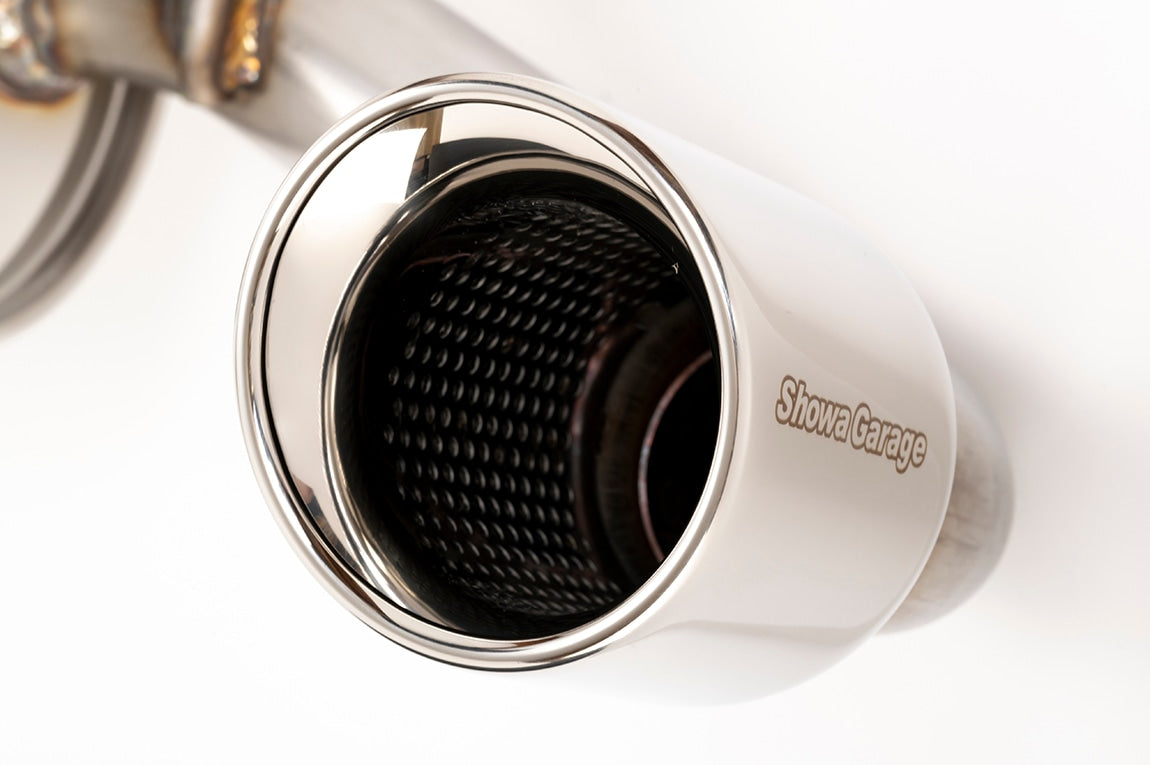 This muffler, jointly developed by Showa Garage and long-established muffler manufacturer 5ZIGEN, is compatible withstock bumpers. It can be installed without modification to the factory bumper.