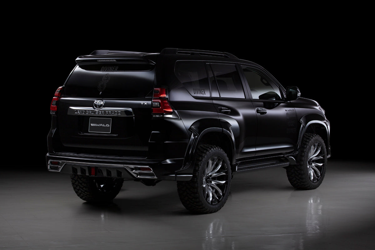 | Product Description | Year Model: 2020.8~ For model 3BA (for gasoline vehicles). Cut the outlet and install by welding. After Face Lift Model of Toyota 150 PRADO got the tuning program by WALD International. The style of the front and rear spoilers are the add-on "SPORTS LINE” Design. To enhance the quality of the products and make the easy installation, ABS Material is adopted. The Accent Chrome Garnish create the high-class air on the body. By developing the 45 mm width (One Side) Over Fender, the aggressive style can be on TOYOTA 150 PRADO. The Exclusive Size Wheel is set up for the Over Fender. In addition to the extra modification, the Dual Side Muffler is developed for the heavy exhaust sound. |