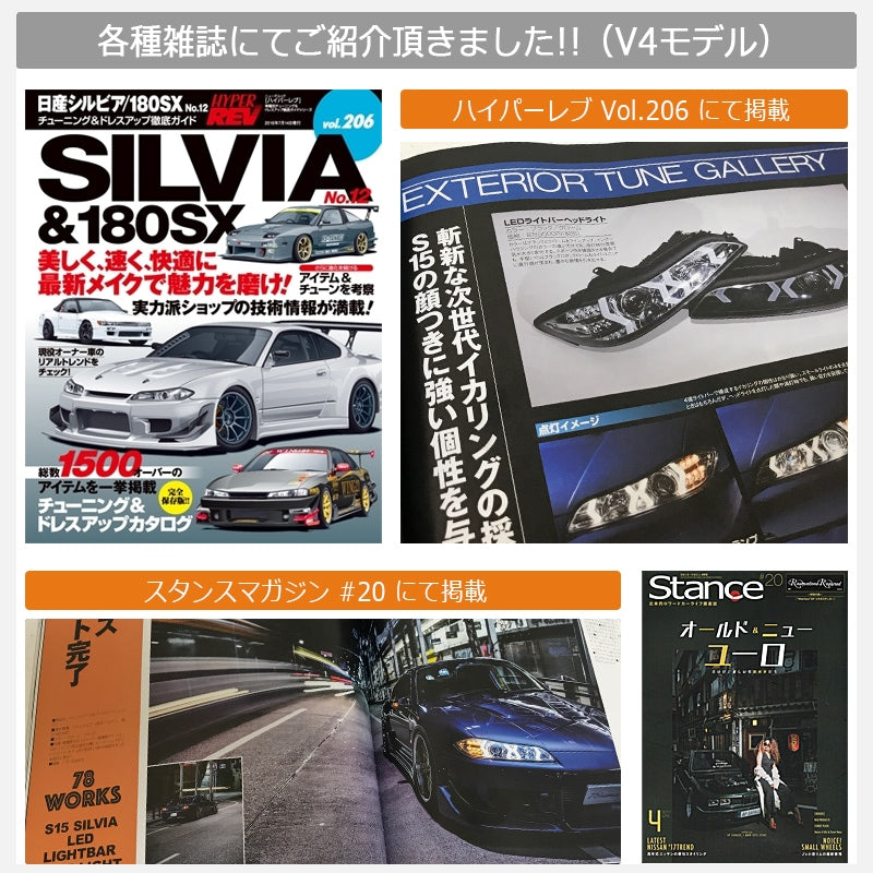 | Product Description | We've responded to your requests by releasing a limited number of special models with LED low beams (limited production). By using specially designed LEDs and projectors, we've achieved brighter illumination than previous models. Another attractive feature is that it eliminates the need for wiring and labor to install aftermarket HID kits or LED bulbs. ■One set (left and right) ■Reliable Japanese beam specification ■Includes original 78WORKS instructions ■Up/down/left/right beam adjustment function ■Can be connected using the included coupler wiring *No need to modify the vehicle's wiring ■Flowing turn signal model *Can be switched to flashing mode ■Includes hyper-flash prevention resistor ■Low beam: LED High beam: H1 *Halogen bulbs included for high beams ■Auto-leveler implantable ■180-day LED warranty [Compatible vehicles] S15 Silvia 1999 (Heisei 11) to 2002 (Heisei 14) All models, all grades Compatible with both halogen and factory HID vehicles GF-S15 Spec S, Spec S Aero, Spec S b Package, Spec S G Package, Spec S L Package, Spec S V Package, Spec R, Spec R Aero, Spec R Type B, Spec R b Package, Spec R L Package, Spec R V Package, Style A Autech Variety [Reference OEM part number] 100-63521 100-63514 26060-85F27 26010-85F27 Weight: 6715g Dimensions: 68cm x 49cm x 29cm |