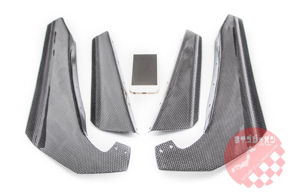 It is a carbon two-stage canard for exclusive use of R34 Skyline GTR genuine bumper. In order to increase the sense of unity, the main body stay part and side flange (outside) are integrally shaped with carbon. In the end, it became this shape in order to achieve both performance and design. By integrating the stay and the main body, bolts, screws, rivets, etc. do not appear on the surface, so it is beautiful and has strength that general-purpose products cannot produce. The surface has a carbon, clear gel coat, and clear paint finish. Normally, the 34 bumper is equipped with a lip spoiler, so I think it will be tighter than in the photo. The 34 bumper is also reasonably priced and more people are attacked by the circuit. It seems that there are many cases where the GT wing etc. are attached and the aerodynamic aspect is also taken care of. We have recently developed the R34 model, paying attention to the aerodynamic balance of the front and rear and the design. On the lower side of the important canard, it extends from the bumper side toward the front of the bumper as much as possible, and the mounting point is provided to the front end to prevent vertical synergies when downforce is applied and pursue performance as much as possible. Furthermore, in the case of 34, further strength can be expected because it is extended to the mounting location such as the front lamp and fixed with screws. The strength is 4 plies in total. The important part is 6 plies. The thickness and strength are changed depending on the location. The stay part and side flap part have a rib structure to gain as much strength as possible. Also, there is a dent on the rear of the genuine bumper (near the tire) that is quite annoying when installing the canard, but I adjusted the shape so that it fits well there. The dimensions are quite large in our canard series. Since it can be installed only using the attached dedicated screw, it can be installed with a single Phillips screwdriver. Of course, there are holes for screws in the stay part, and mounting screws are also included. Since the bumper is made of urethane, there is no need to make a pilot hole. It is economical because there is no need to purchase mounting stays separately. The photo shows a sample product temporarily attached to the development bumper with tape, so it is not firmly fixed, but it is a screw. It is firmly fixed with a stopper. Please bid after seeing the photograph and being convinced. Since it was developed with the 34GTR genuine hamper you see, we do not match it with other bumpers (GTS, NISMO, outside the company, etc.). note that. The set includes a total of 4 canards and mounting screws. This exhibition is a two-stage specification. R34 skyline GTR original bumper exclusive use carbon two step Canard.The design made the body stays part, side flange (outer side) carbon therefore shaped to increase sense of unity.It finally became this form to make performance and design compatible.By integrating the stay and the main body, bolts, screws, rivets etc do not appear on the surface, so it is beautiful and strength that can not be taken out with general-purpose goods. The surface is carborne, clear gel coat, clear paint finish. Usually I think that the lip spoiler is attached to 34 bumpers so it will be tighter than the photo34 was also more affordable and more people attacked at the circuit.