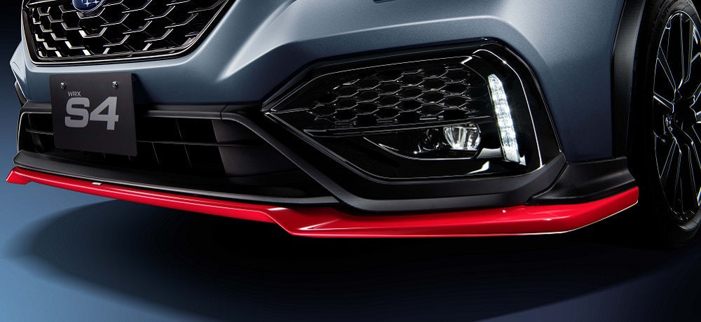 | Product Description | The front under spoiler attached to the bottom of the blacked out front bumper tightens the underside of the body of the new WRX S4. The cross-sectional shape of the central part is optimized for the new WRX S4, the wind flowing under the floor is rectified, and a balanced lift reduction is achieved. Cherry red paint |
