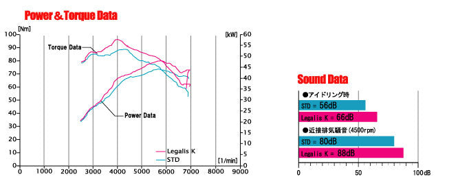 | Mid RPM Acceleration Sound | Stock: 88dB -> Fujitsubo: 99dB |