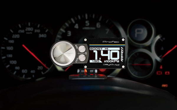 The new PRofec is compact, powerful and easy to use. The large OLED Display, with the simple two-button / rotary-dial control, make for intuitive operation. An ultra slim controller can display in digital, bar-graph, or graphical modes and can be rotated 180 degree for installation with the included adjustable mount or flush mounted. By separating the display and control unit in the driver___s compartment, from the engine compartment-mounted, waterproof, sensor unit, it makes installation straightforward. Only one thin harness is required to be routed through the firewall. The combination of the new 300kPa (43.5psi) integrated pressure sensor, the more compact solenoid valve and faster ECU processer, provide quicker response and the most stable boost curves yet. The PRofec also maintains popular features like, Lo, Hi, Scramble boost presets, last-boost display, peak-hold recall, warning alert and safety limiter.