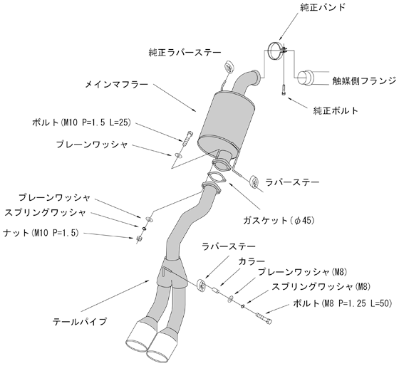 | Product Description | Muffler Style: LEGAL Style: KC-1 Material: S4 Tip O.D.: 76.3 x 2 Pipe Size: 45 Consist of: 2 Close Sound Level Stock: 84 Close Sound Level HKS: 87 Idling Sound Level Stock: 57 Idling Sound Level HKS: 58 |