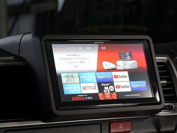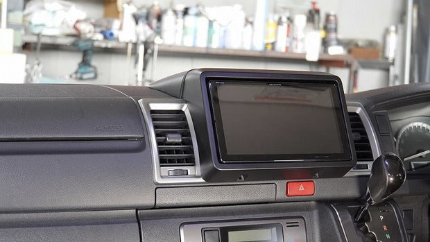 We will release "9-inch navigation face kit" for Hiace. Because of the large wide body, I want to install a large screen 9 inch instead of the standard 7 inch wide. We will respond to your requests. How to make the installation look natural, not just a cover. With a sense of unity with the navigation panel, matching with the round shape and decoration that fits the dashboard, and even the reflection of the glass, we created a sense of luxury because we can buy a 9-inch navigation system. If you look at this big screen, you won't be able to go back to 7 inches wide anymore. It has such an impact. You will be able to enjoy Carrozzeria Cyber ​​Navi, a next-generation car navigation system connected to the Internet, such as You Tube playback, on a larger screen. In addition to wide, we have newly released narrow (for standard body). Please specify when purchasing. * Wide body and narrow (standard body) are available. * Models with decorations on the dashboard such as Super GL are supported. If there is no decoration such as DX, there will be a gap (it is possible to divert the dashboard for Super GL-need to purchase separately).