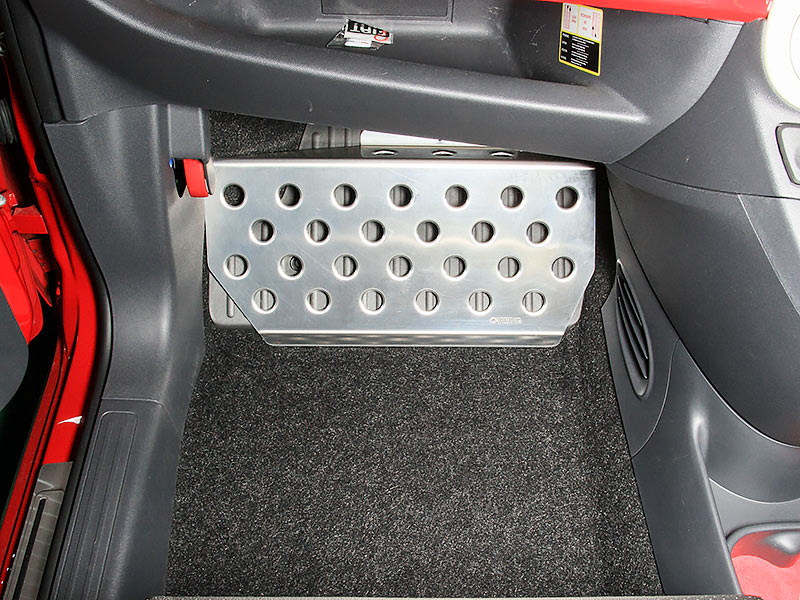 | Product Description | The passenger plate is a passenger seat footrest that supports the passenger's posture with both feet when cornering or braking suddenly. The material is 3mm thick aluminum. Easy fitting that can be attached to the vehicle by simply sticking it on the floor carpet with Velcro tape. |