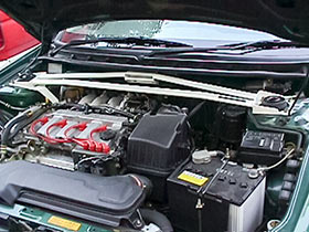 -By connecting the left and right suspension upper mounting parts with strut tower bars, it is possible to increase the body rigidity and perform the original work of the suspension, and also suppress the twist of the body that occurs during cornering and improve handling and stability.