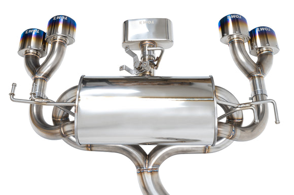 | Product Description | **Must be installed at the same time as the rear bumper diffuser.Variable valve. Material: Made of stainless steel. Compatible with the pre-certification system for replacement mufflers. Reference proximity noise level: 94dB [93dB] / Values in [ ] are those of the standard model. Piping Diameter: 76.3mm - 60.5mm x 2 - 50.8mm x 2 (Outer Left/Right) x 2 Piping / 76.3mm - 50.8mm (Center) Piping w/ Valve system Tip Diameter: tail section 200φ+120φ titanium oval offset x right and left |